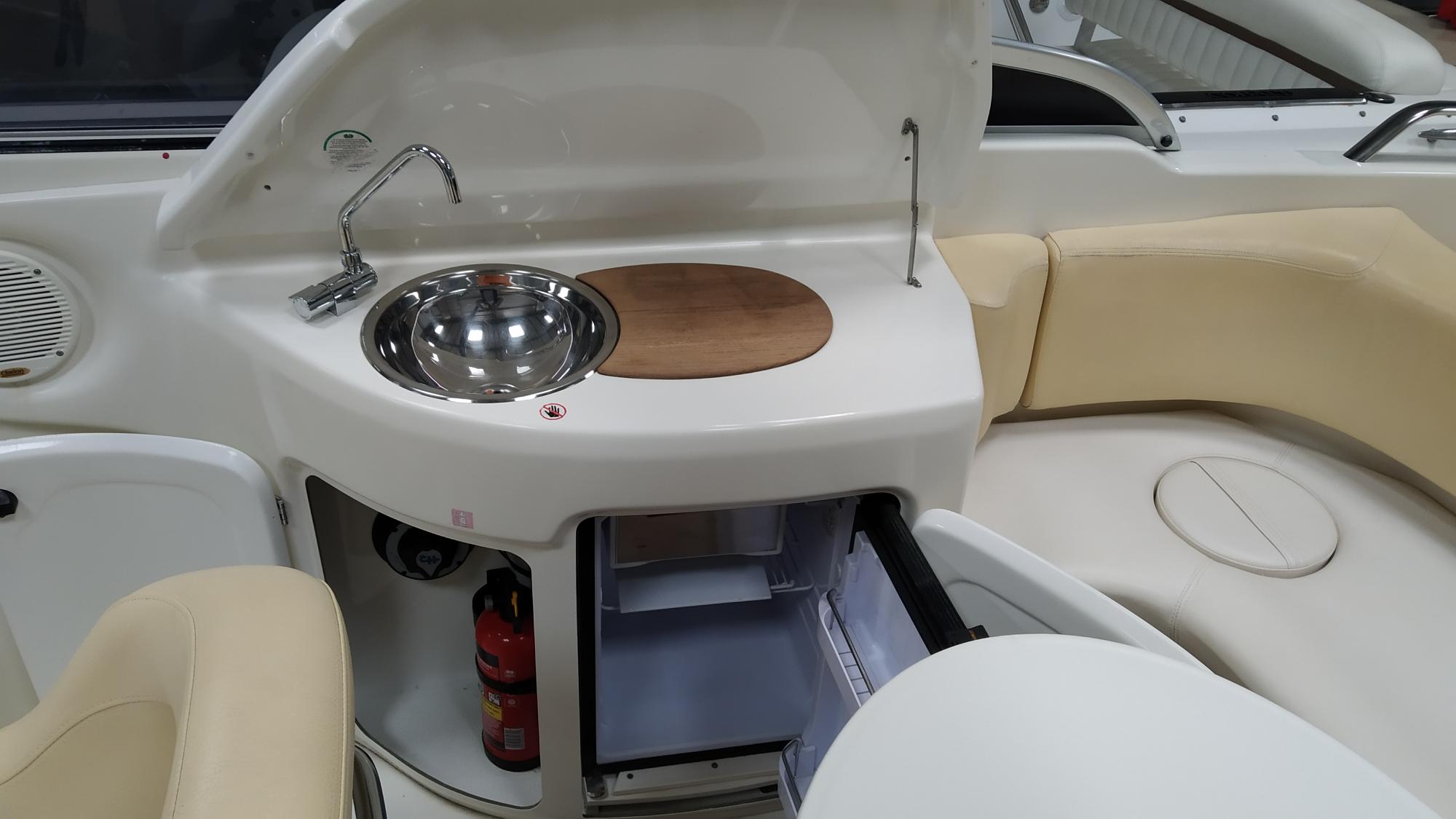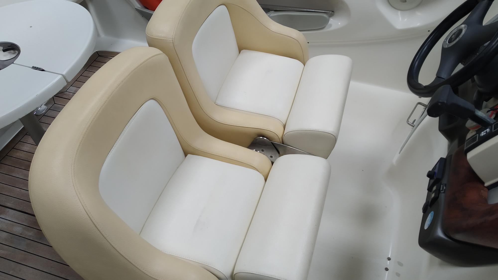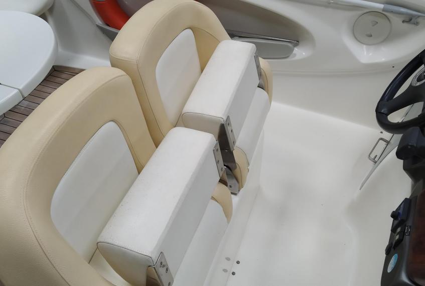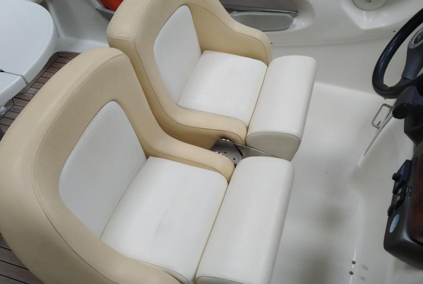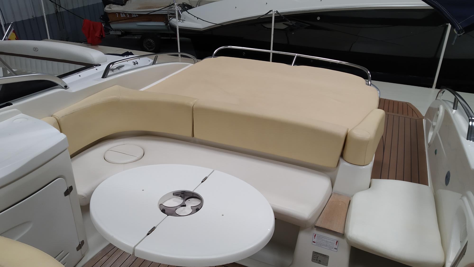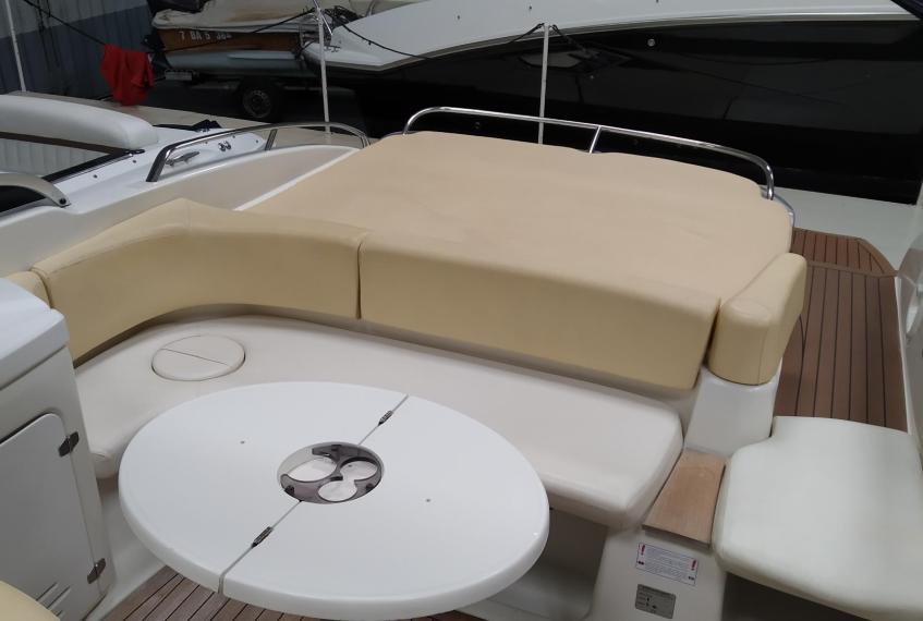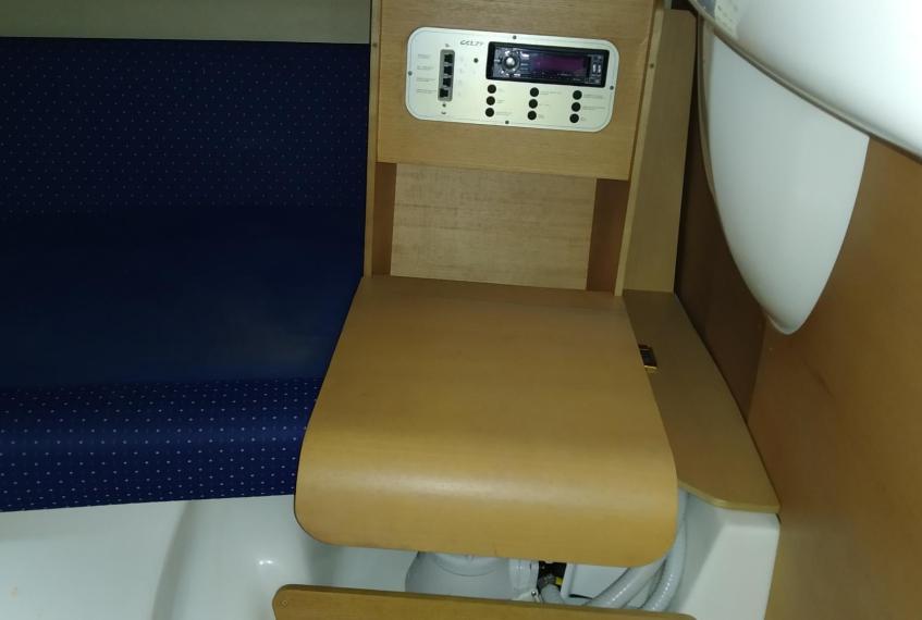 Cockpit cover - Bimini top - Cockpit table - Cockpit wet-bar with sink and refrigerator - Water tank - Fuel tank - Stern shower - Bathing platform with ladder - Electric marine WC - Audio system with speakers - Flexiteek on bathing platform - Cockpit teak laid - Stern sundeck with hydralic opening for engine access - Antifouling.
