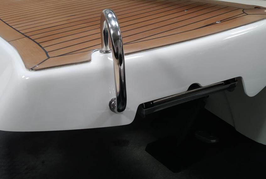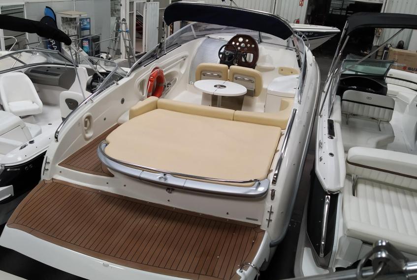Sportboat with a big stern sunbathing area and platform.
