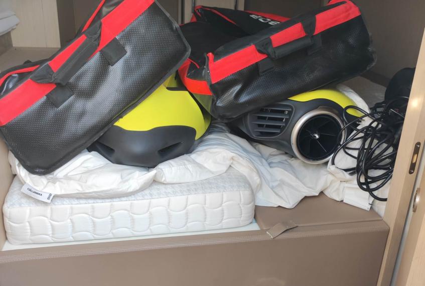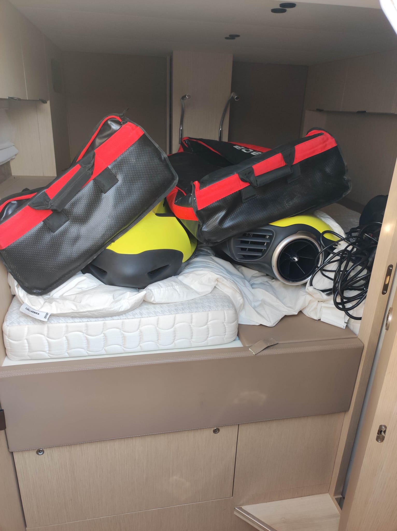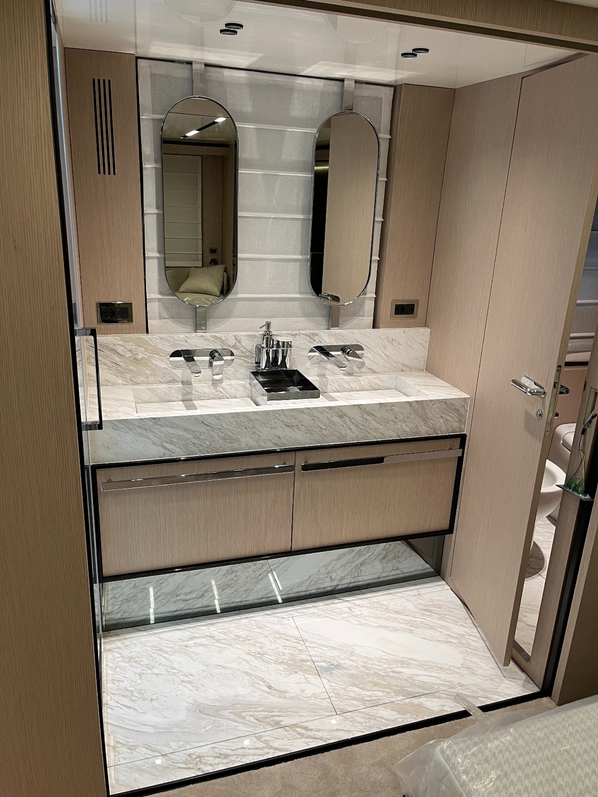 ZONA ARMATORIALE A CENTRO BARCA CON STUDIO, CABINA ARMADIO,BAGNO A MURATA CON SERVIZI SEPARATI, GRANDE LETTO MATRIMONIALE.