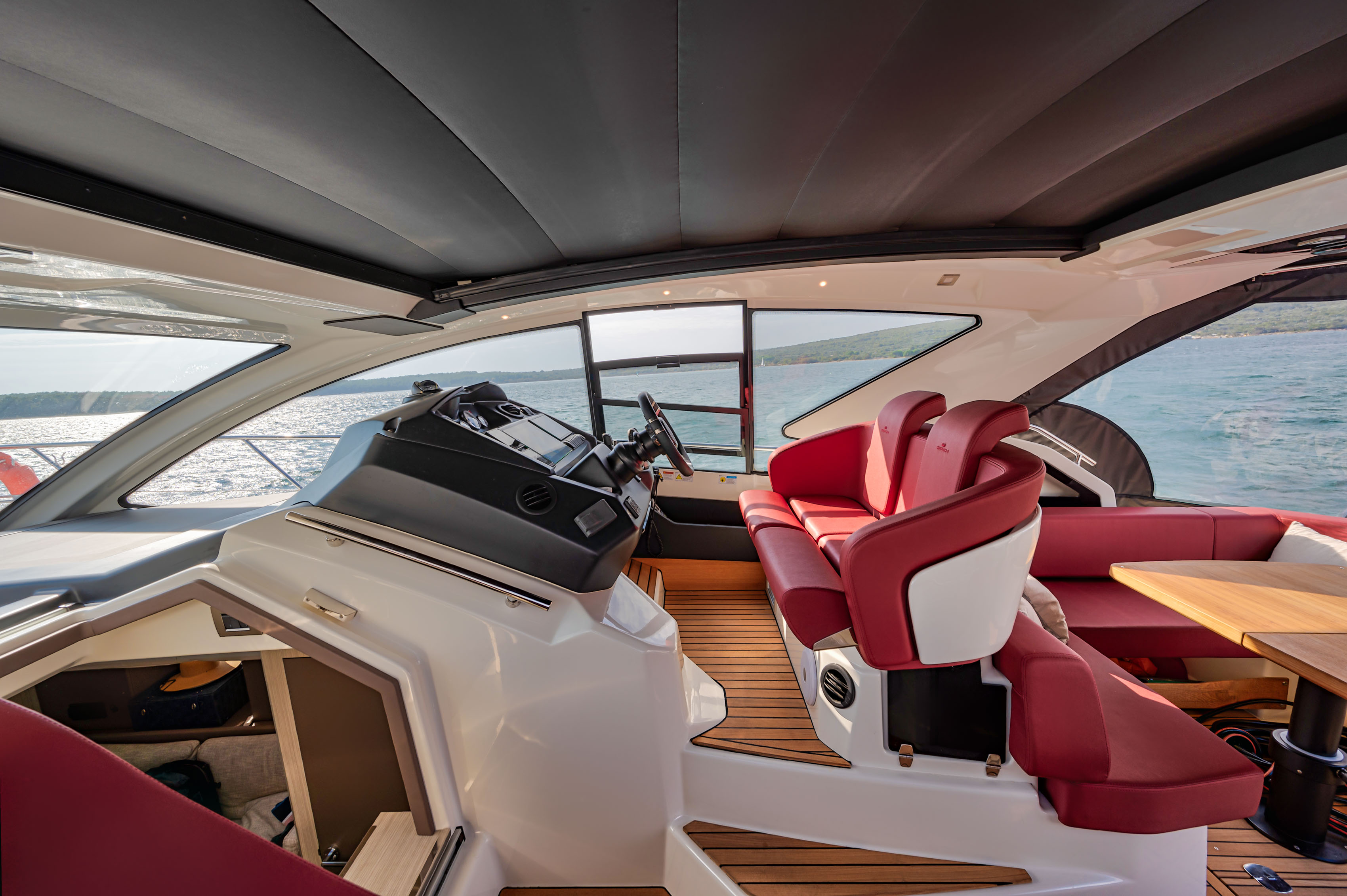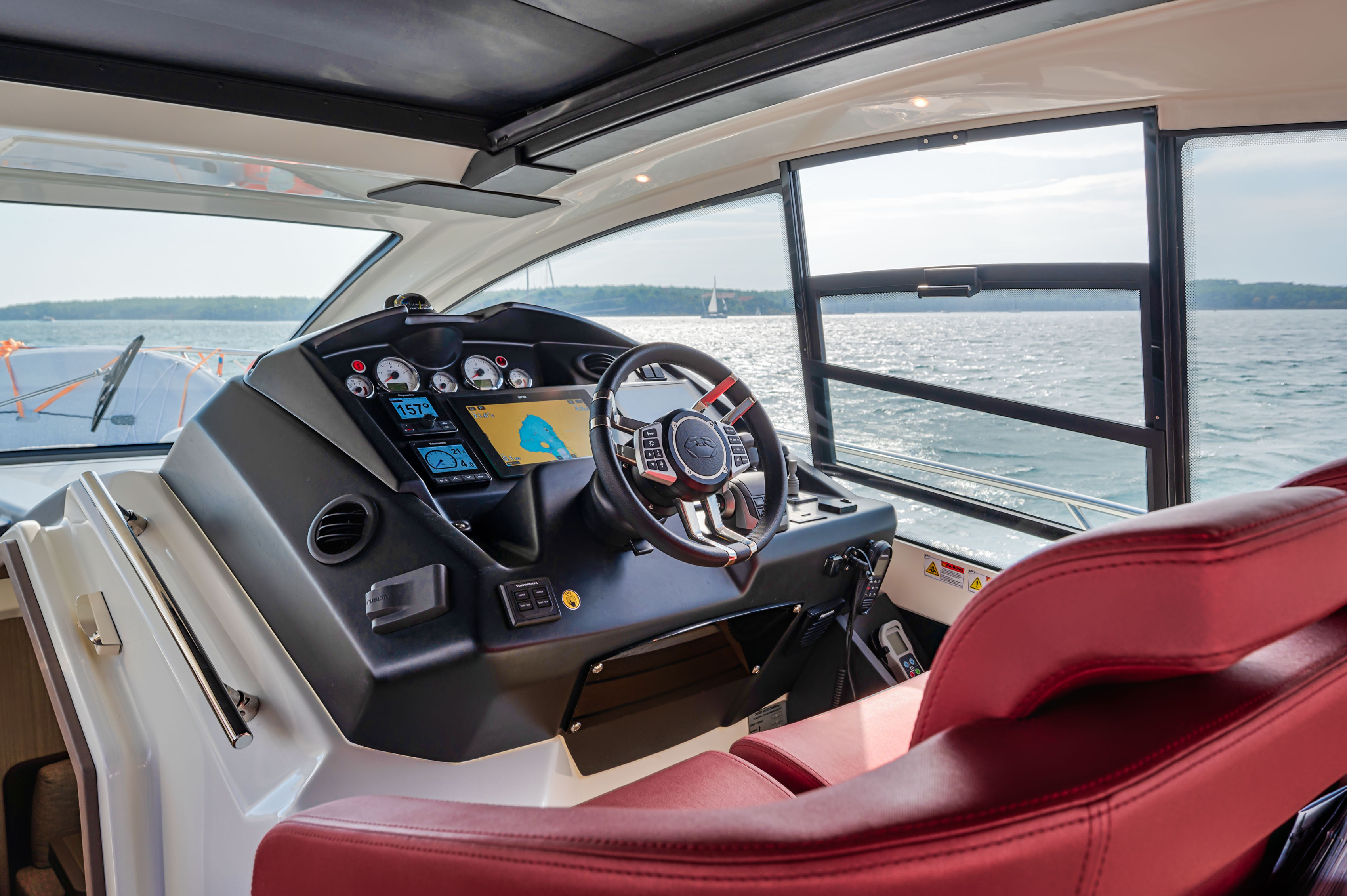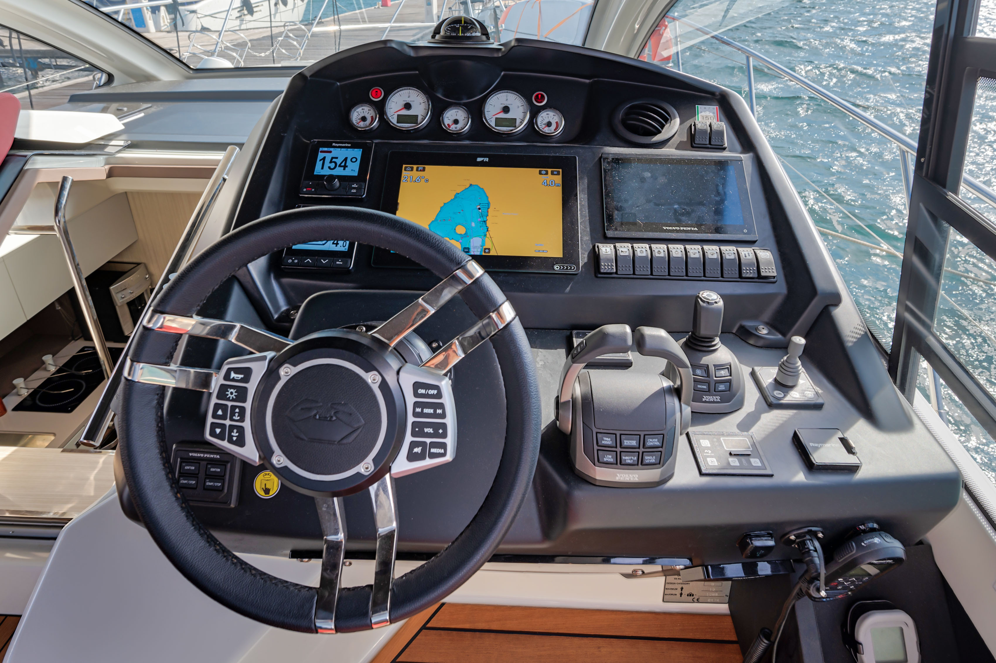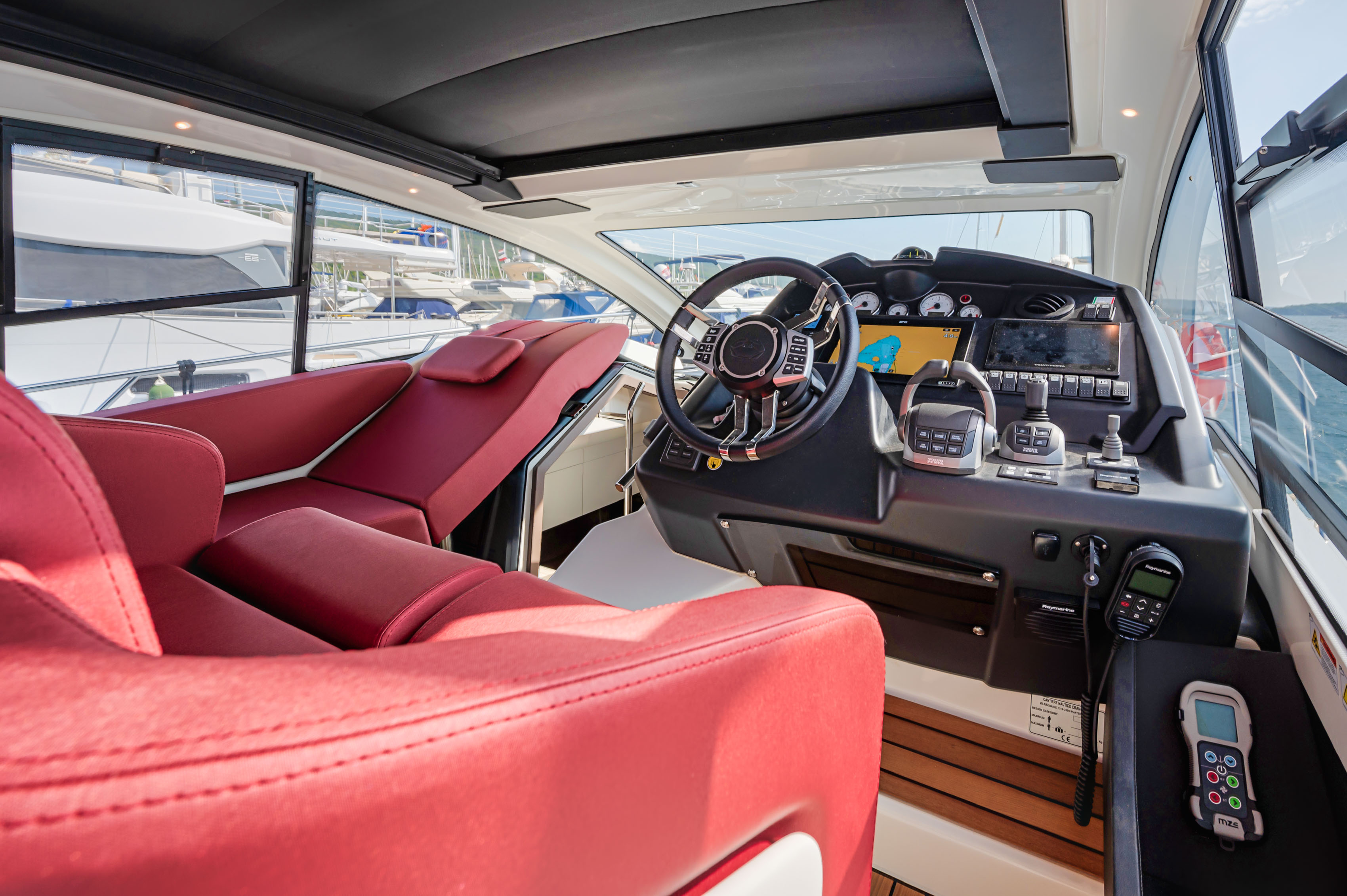 Autopilot (Raymarine), Chain counter, Chartplotter (Raymarine), Compass, Depth Sounder (DTS Raymarine), DSC vhf (Raymarine), Electronic engine control, Joystick