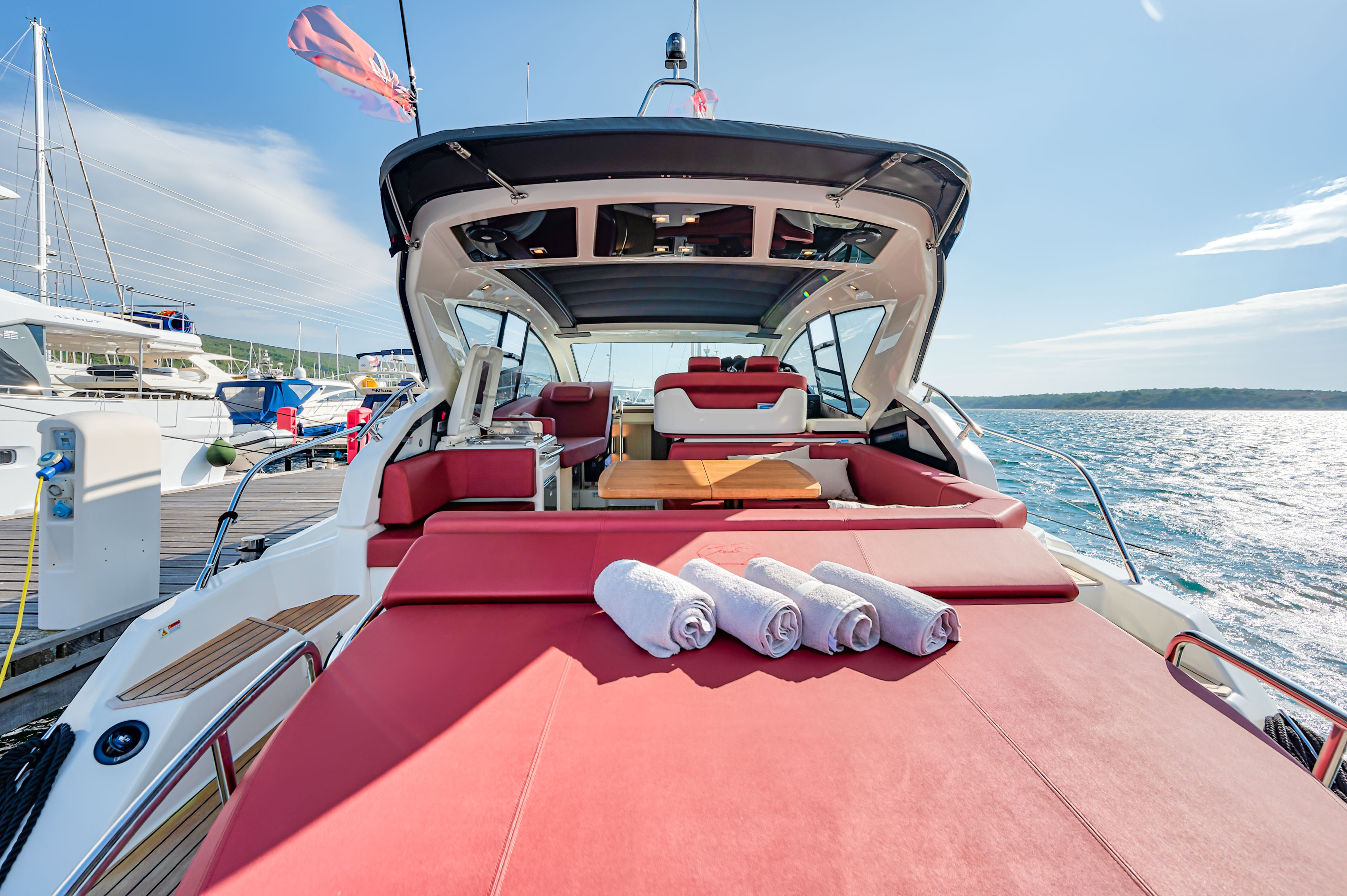 Cockpit Cushions, Cushions, Stern Cushions, Sunbathing deck, Sunshade