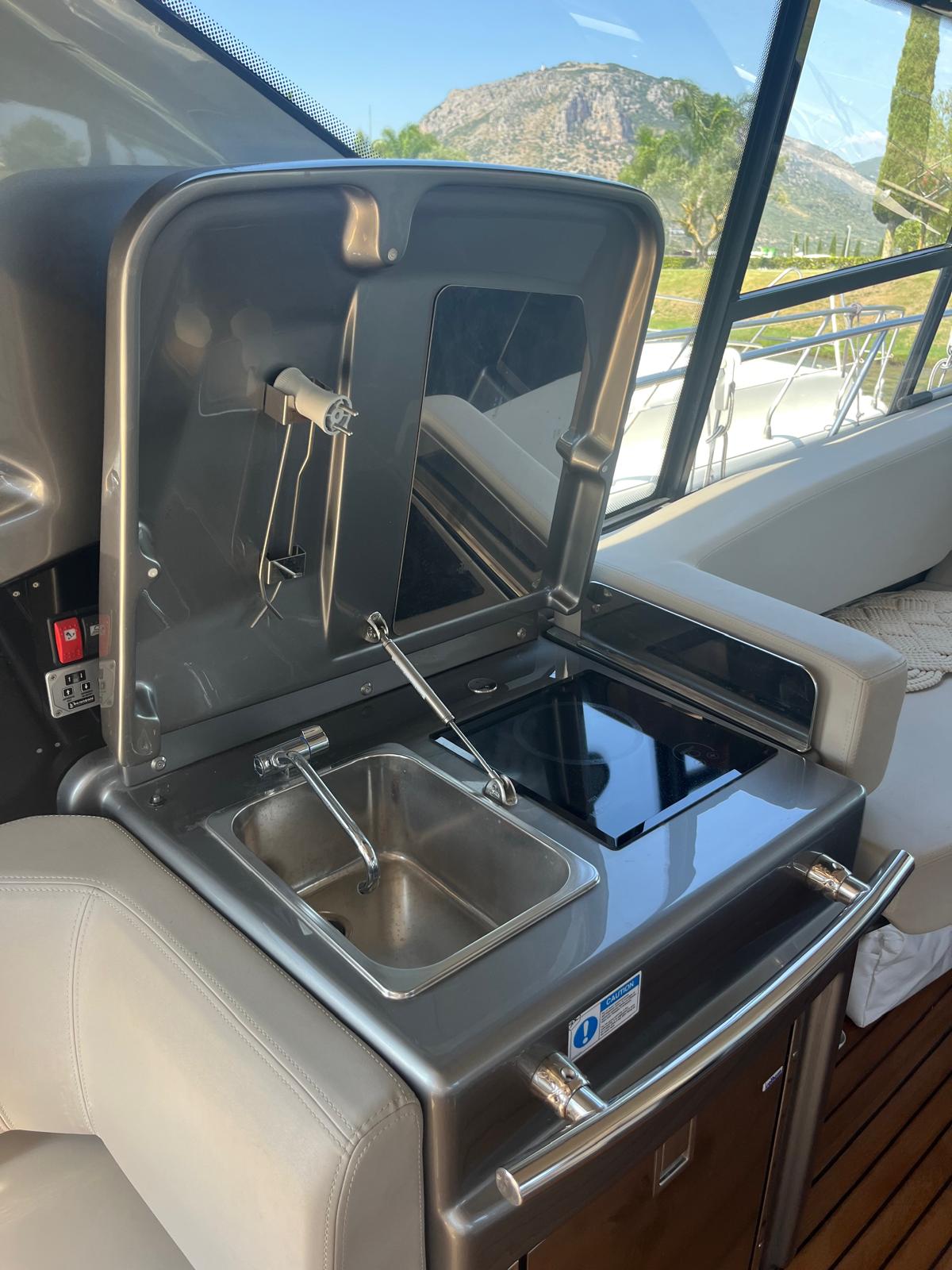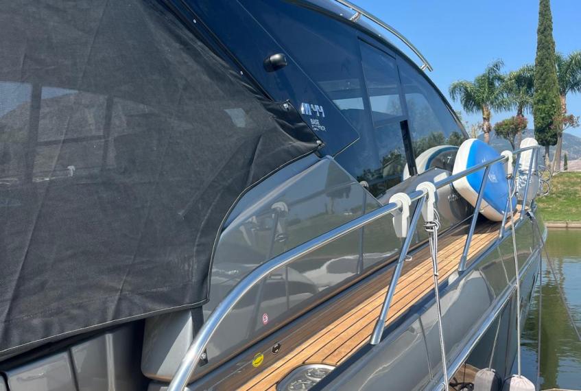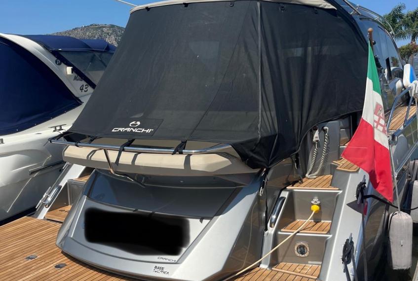 Generatore, Aria Condizionata cabina, Teak Plancetta, Teak Pozzetto e camminamenti prua, Passerella idraulica, Autopilota, Verniciatura metallizzata completa "Grigio Cosmo" + Hard Top "Nero Vulcano", plancetta idraulica sali/scendi ecc...