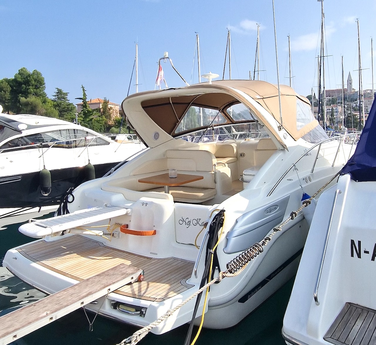 ENGINES & OPTIONALS:                                                                                                                                                                                              Volvo Penta 2xD4 EVC/DPI (2x260 HP)             -         700 HOURS                                                                                                                                                 Antifouling , n.2 coats                                                                                                                                                                                                                                                                                                                                                            Complete hood (with bimini)                                                                                                                                                                                                                                    Bow thruster with automatic                                                                                                                                                                                          Cockpit fridge - new model                                                                                                                                                                                                       GPS/colour chartplotter                                                                                                                                                                                                                                                                                                                                                                                                                                                               Autopilot                                                                                                                                                                                                                                                Teak laid swimming platform                                                                                                                                                                           FINAL PRICE  Incl. VAT:                       EUR       95.000,00