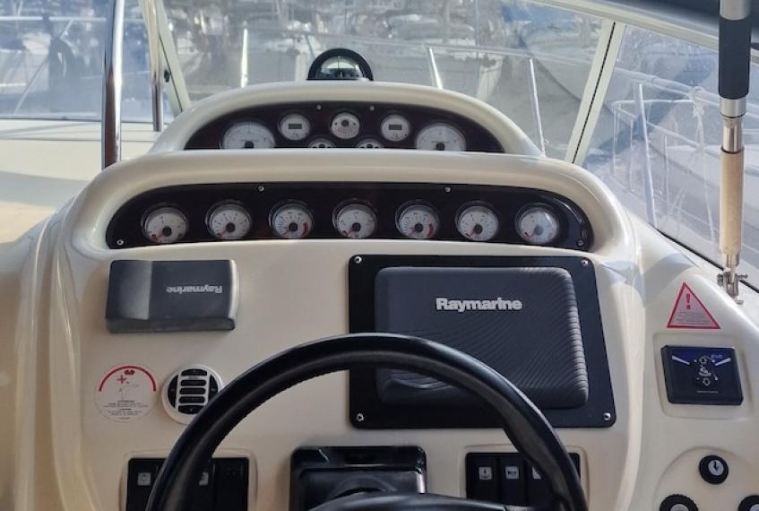 ENGINES & OPTIONALS:                                                                                                                                                                                              Volvo Penta 2xD4 EVC/DPI (2x260 HP)             -         700 HOURS                                                                                                                                                 Antifouling , n.2 coats                                                                                                                                                                                                                                                                                                                                                            Complete hood (with bimini)                                                                                                                                                                                                                                    Bow thruster with automatic                                                                                                                                                                                          Cockpit fridge - new model                                                                                                                                                                                                       GPS/colour chartplotter                                                                                                                                                                                                                                                                                                                                                                                                                                                               Autopilot                                                                                                                                                                                                                                                Teak laid swimming platform