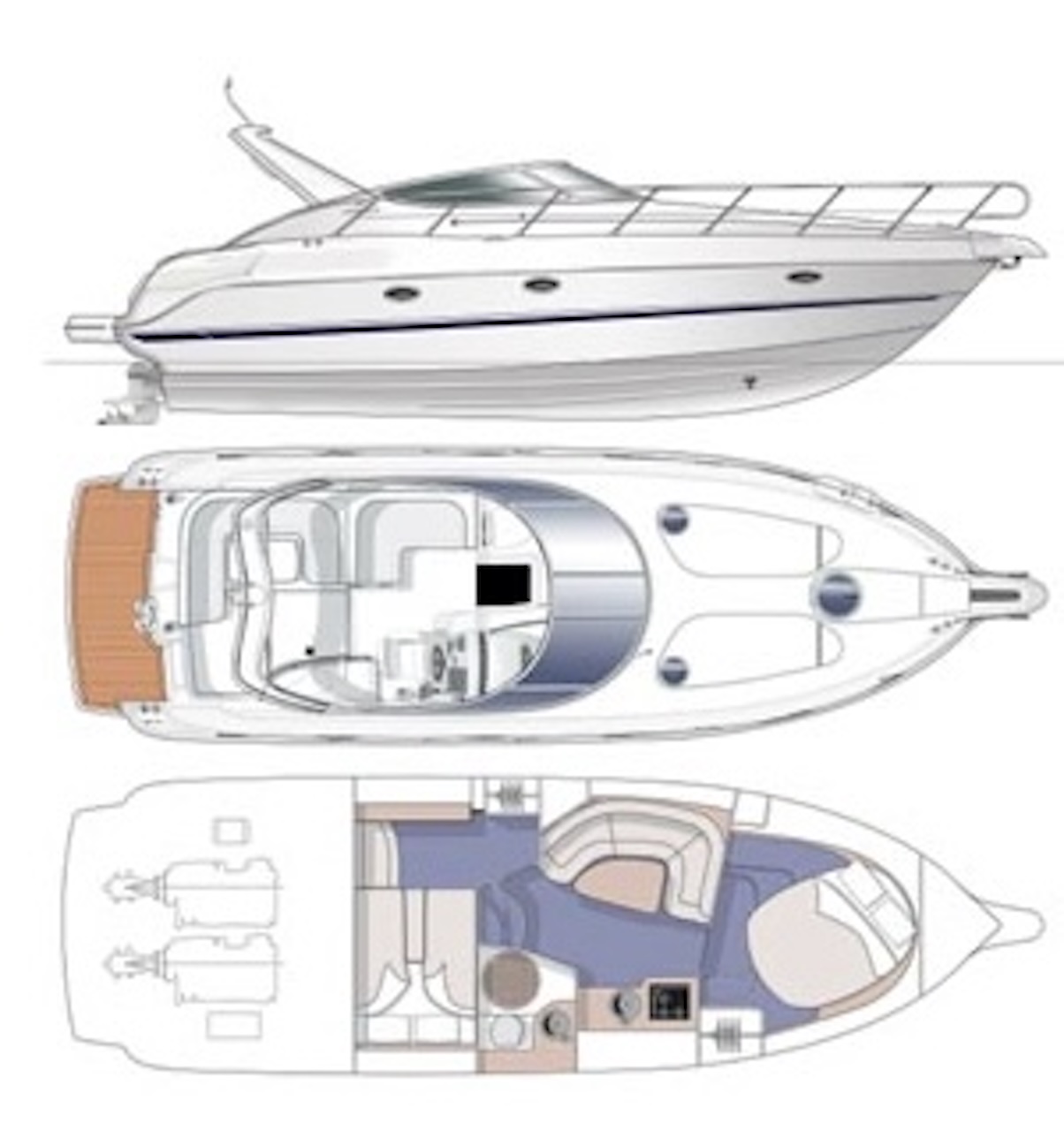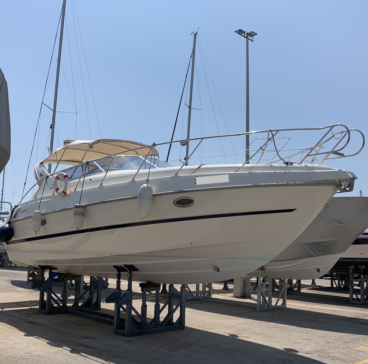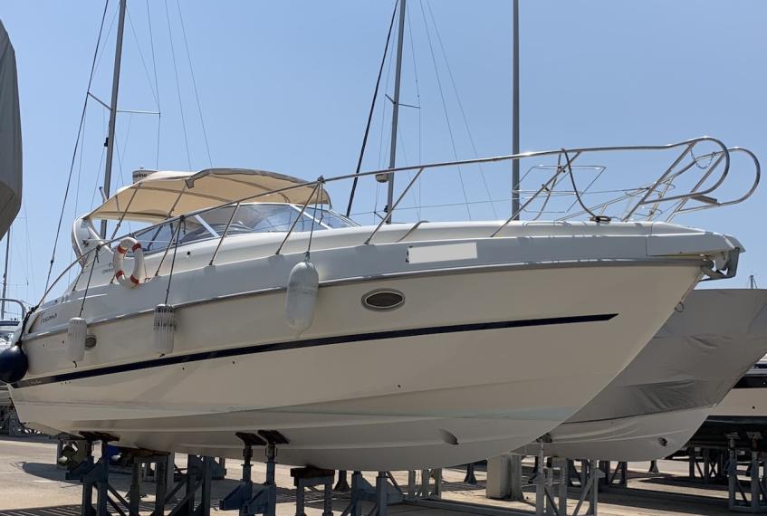 BOAT: CRANCHI ZAFFIRO 34                2005               READY   with full services Zdrives & Engines & hull 05/2025                                                            Length overall 11,21             Beam max 3,49 m                                    Draft (incl.props) 1 m               Dry weight  6.100 kg                                 Fuel capacity  570 l              Fresh water capacity  190 l                     Design category B