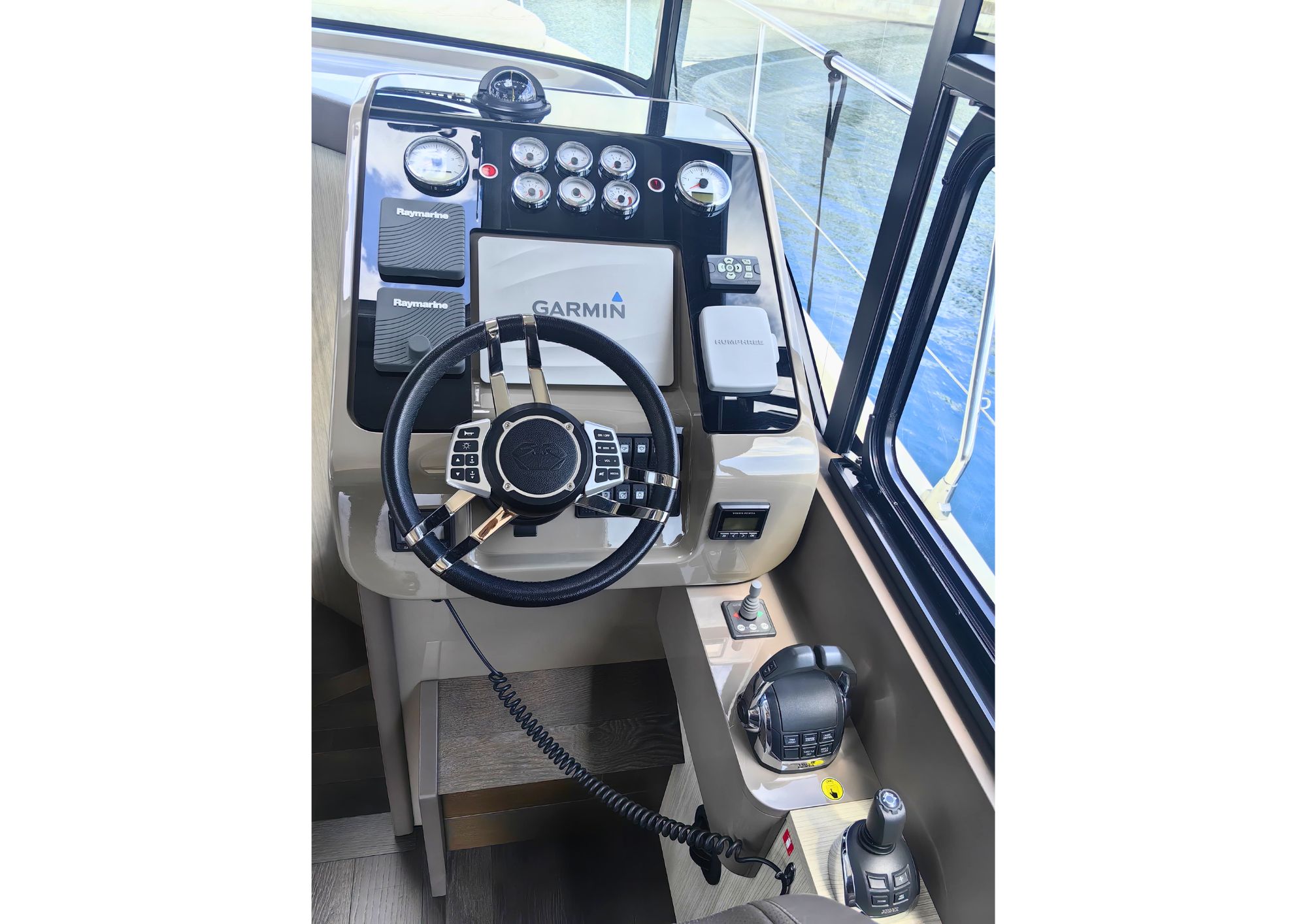 Highlights include Raymarine autopilot, joystick maneuvering, inverter, generator, air conditioning, and radar. Additional equipment such as ultra anchor, electric windlass, hydraulic steering, and chain counter provide extra convenience, while safety gear and modern entertainment systems enhance life onboard.