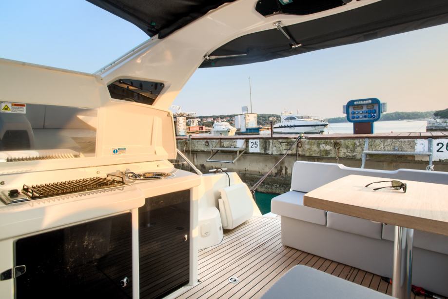 Anchor, Automatic Bilge Pump, Batteries, Battery charger, Bilge Alarm, Bow Thruster, cockpit table, Courtesy Lights, Deck Shower, Directional Spotlight, Draining System, Electric Bilge Pump, Electric Flaps, Electric Windlass, Engine Alarm, Fire Extinguishing System, Flaps Indicators, Gangway (carbon), Horn, Platform, Rollbar, Shorepower connector, swimming ladder, Teak Cockpit, Underwater lights, Water pressure pump, Winch Electric