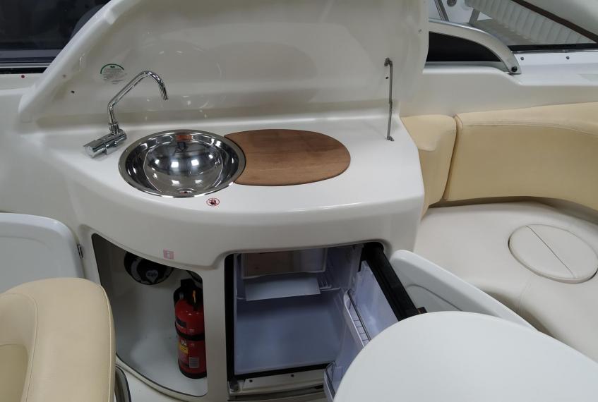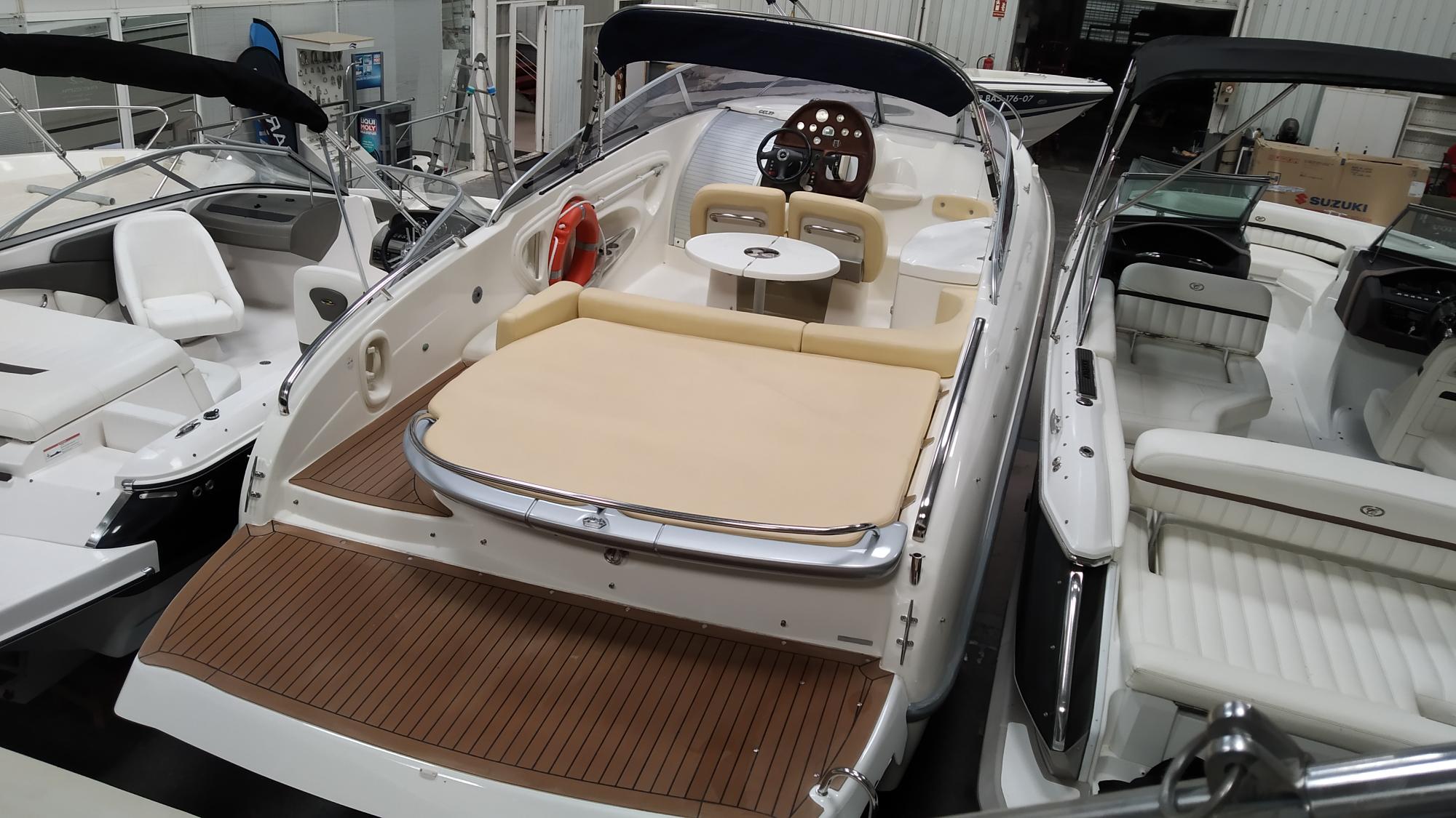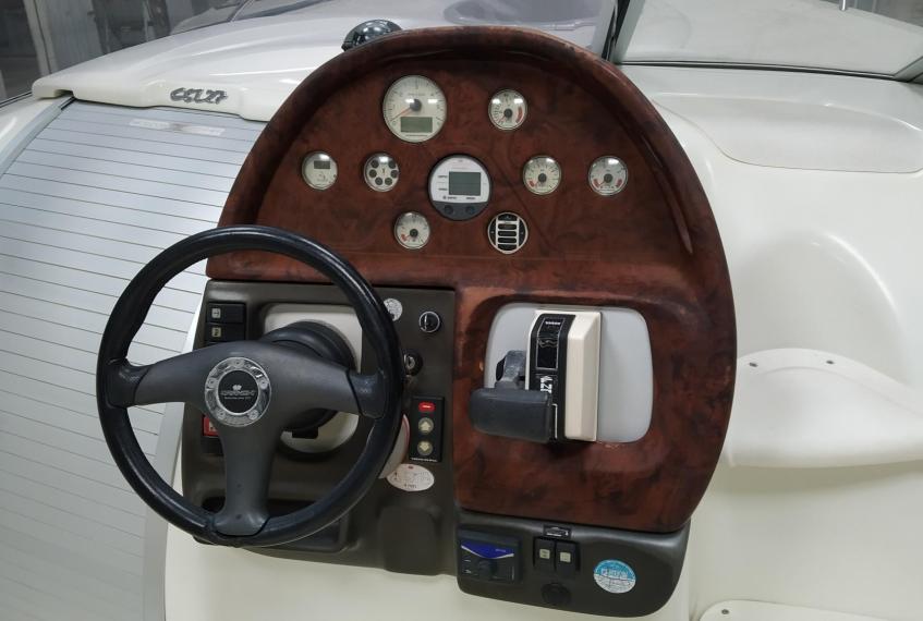 Cockpit cover - Bimini top - Cockpit table - Cockpit wet-bar with sink and refrigerator - Water tank - Fuel tank - Stern shower - Bathing platform with ladder - Electric marine WC - Audio system with speakers - Flexiteek on bathing platform - Cockpit teak laid - Stern sundeck with hydralic opening for engine access - Antifouling.