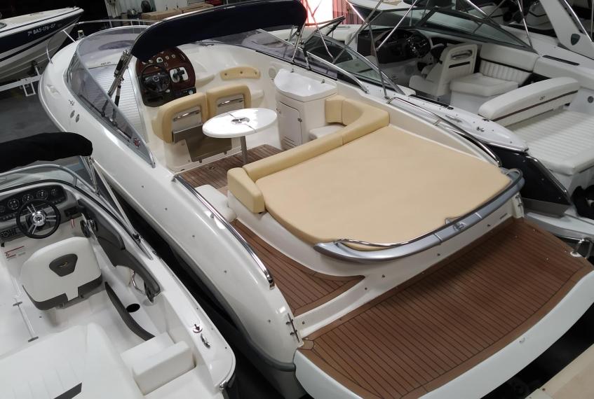 Sportboat with a big stern sunbathing area and platform.