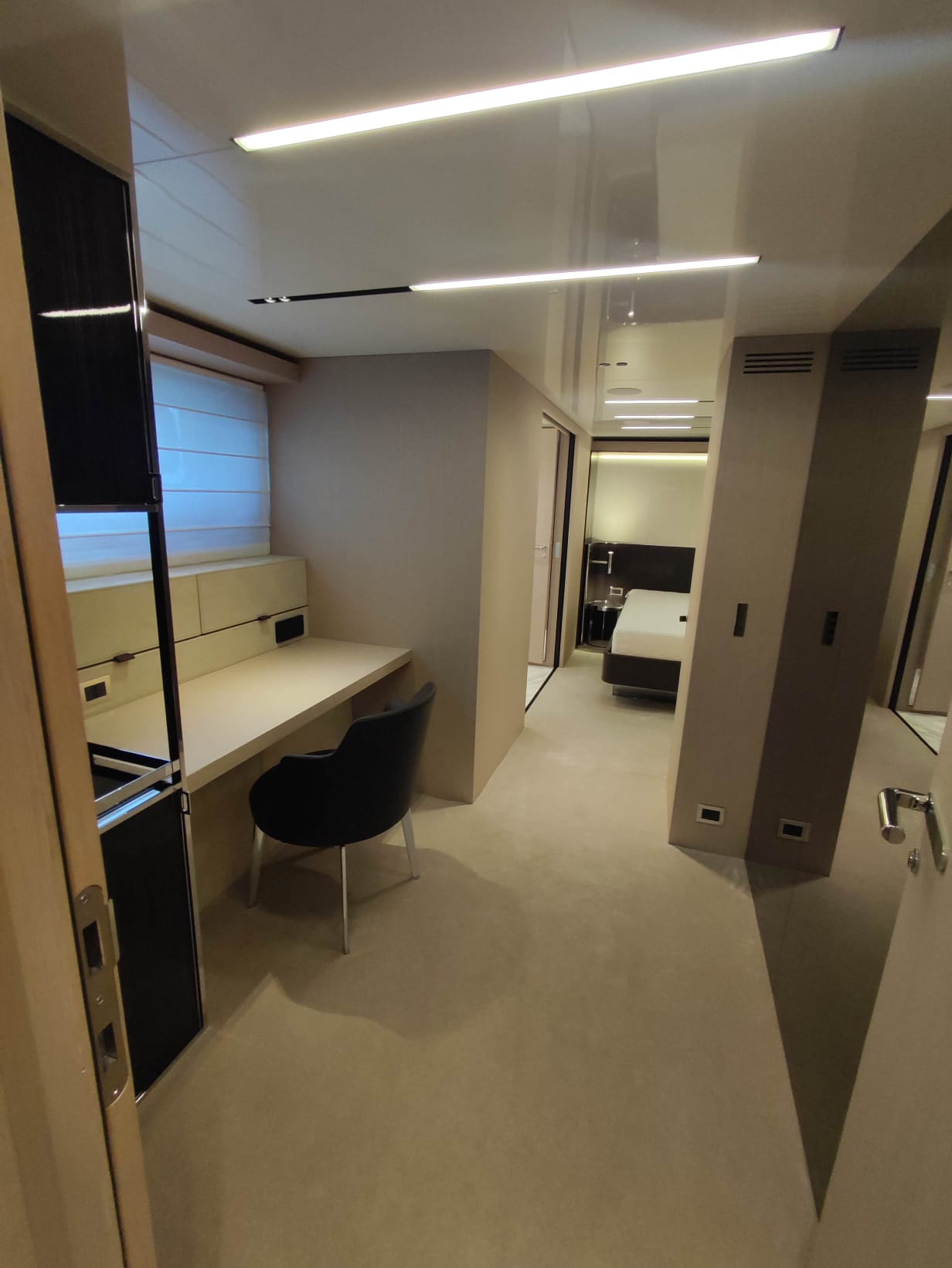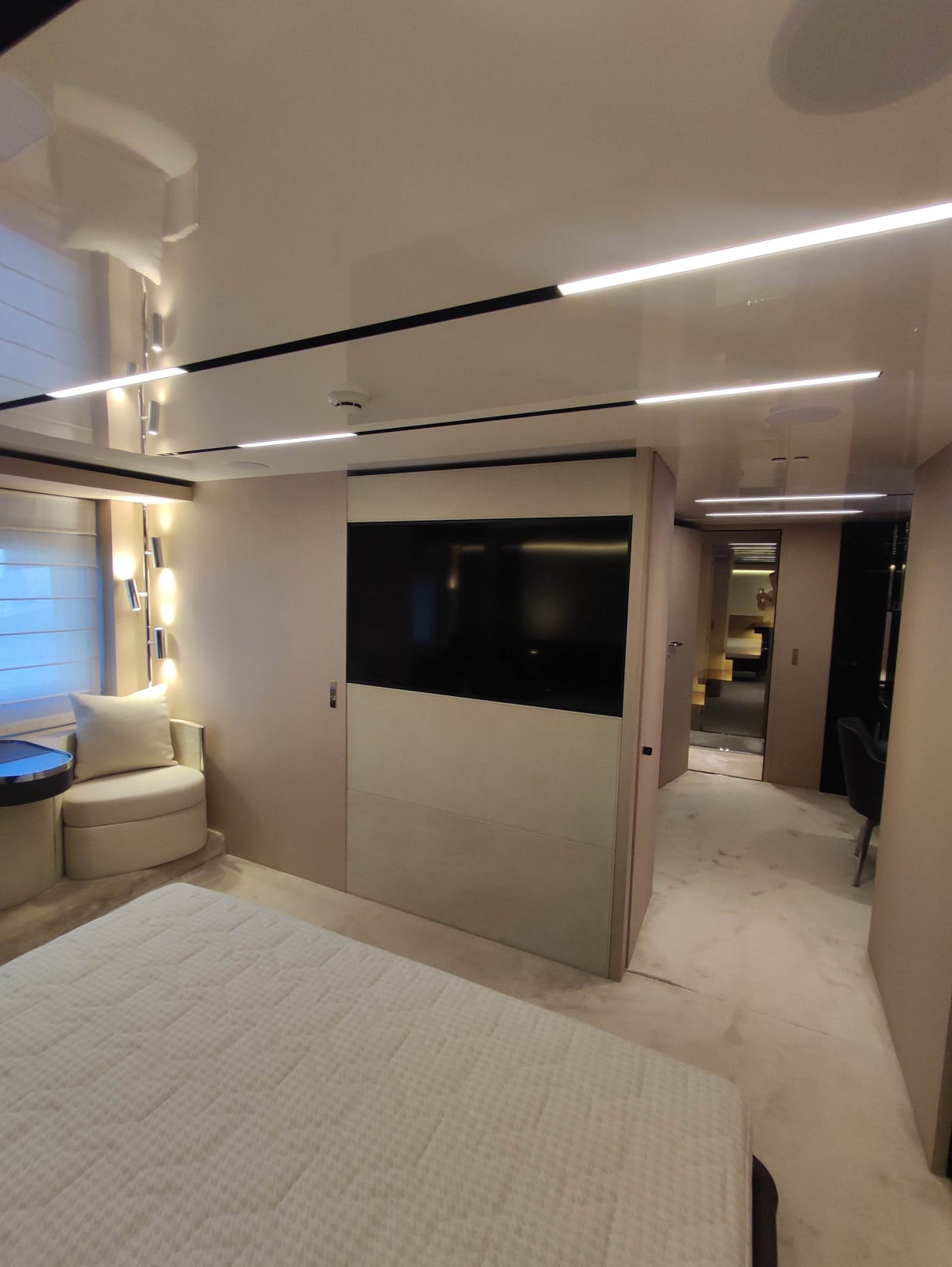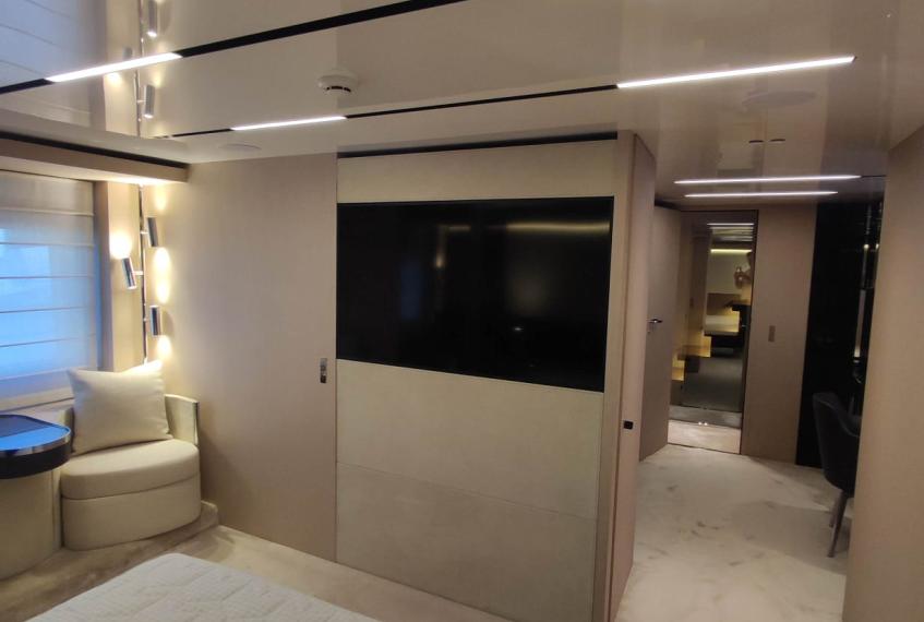 ZONA ARMATORIALE A CENTRO BARCA CON STUDIO, CABINA ARMADIO,BAGNO A MURATA CON SERVIZI SEPARATI, GRANDE LETTO MATRIMONIALE.