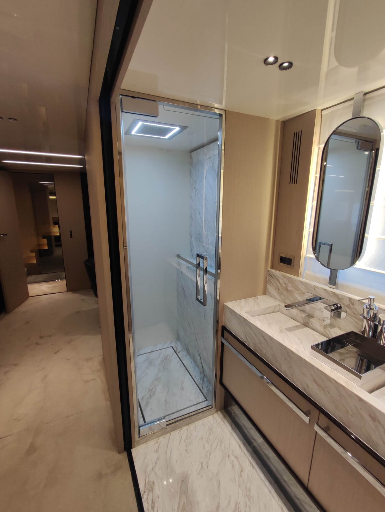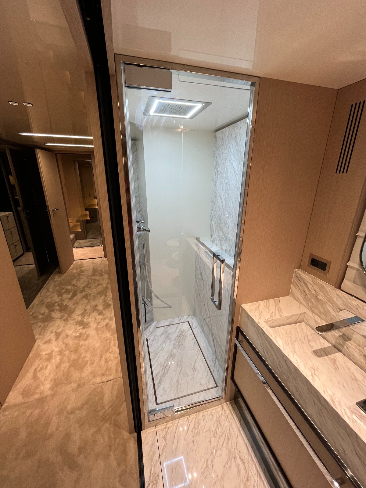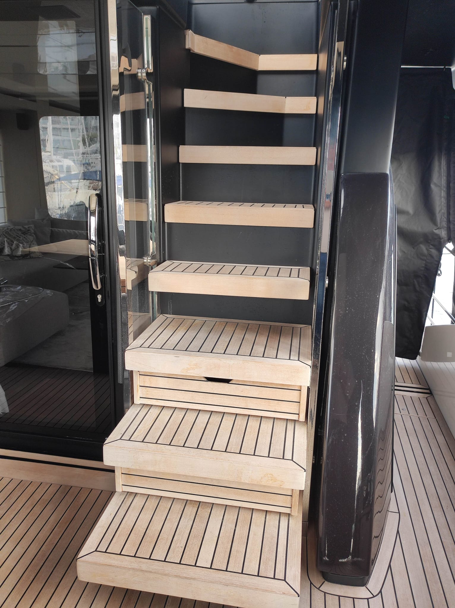 ZONA ARMATORIALE A CENTRO BARCA CON STUDIO, CABINA ARMADIO,BAGNO A MURATA CON SERVIZI SEPARATI, GRANDE LETTO MATRIMONIALE.