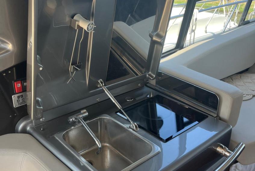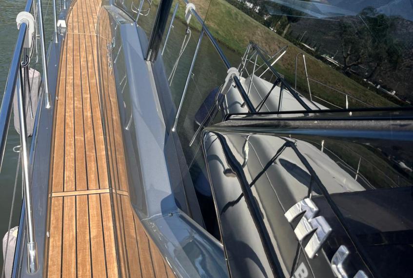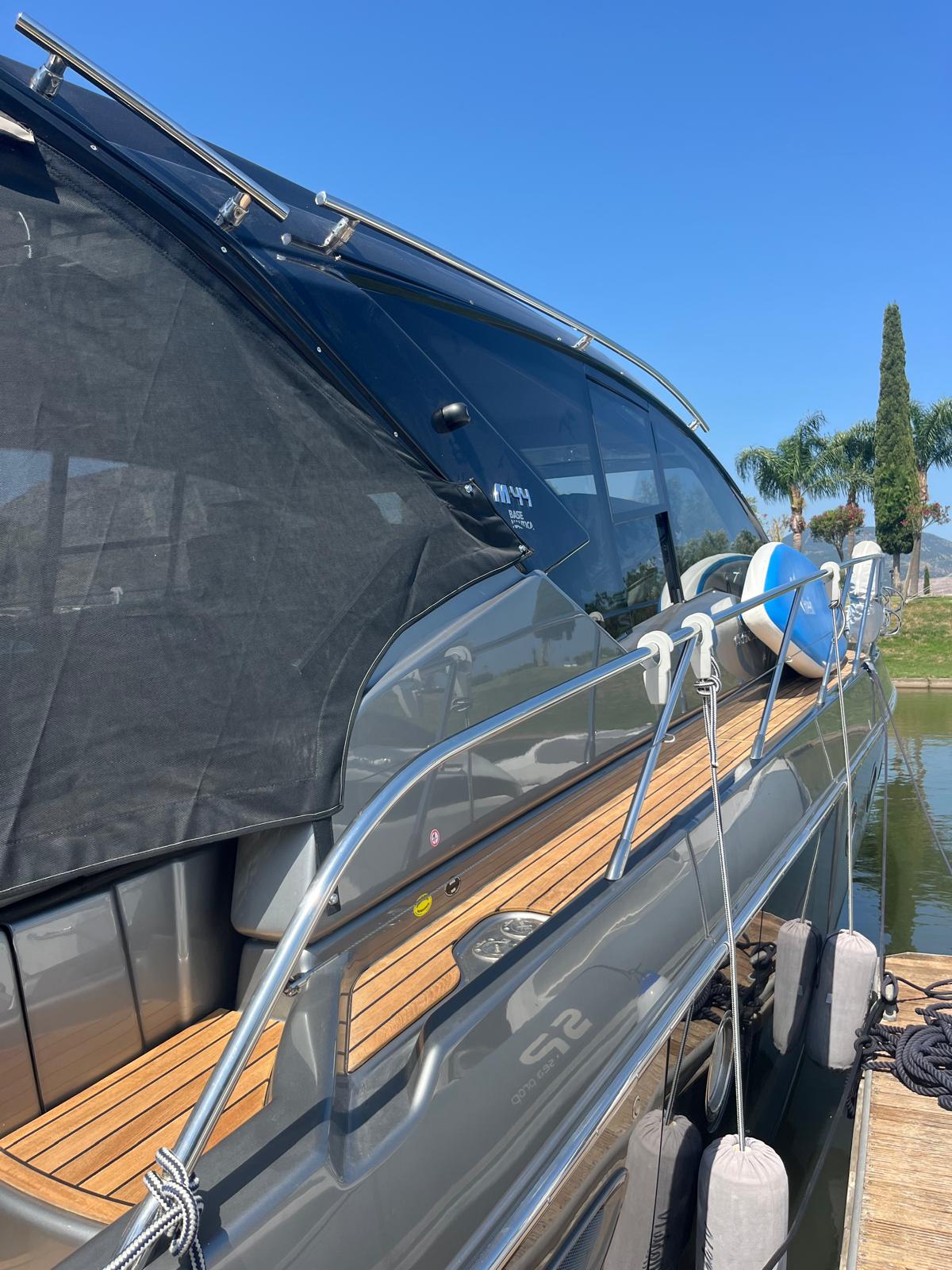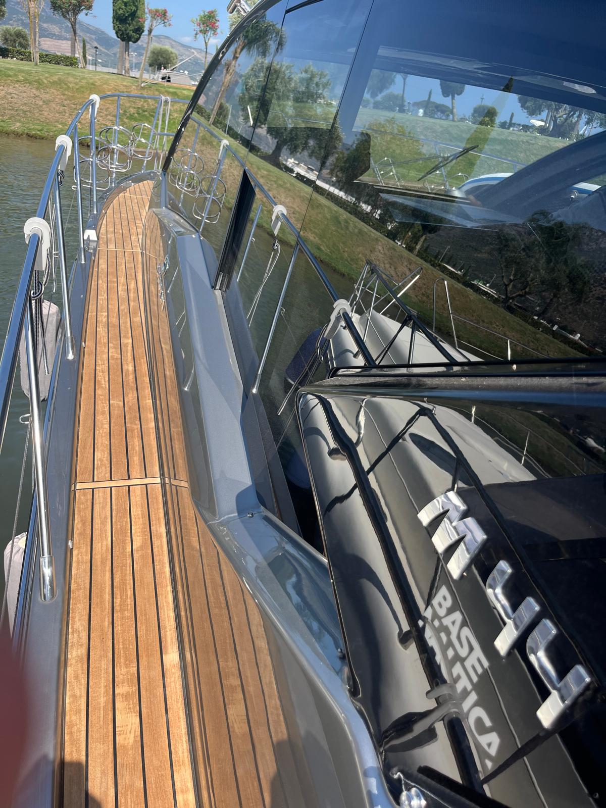 Generatore, Aria Condizionata cabina, Teak Plancetta, Teak Pozzetto e camminamenti prua, Passerella idraulica, Autopilota, Verniciatura metallizzata completa "Grigio Cosmo" + Hard Top "Nero Vulcano", plancetta idraulica sali/scendi ecc...