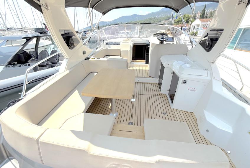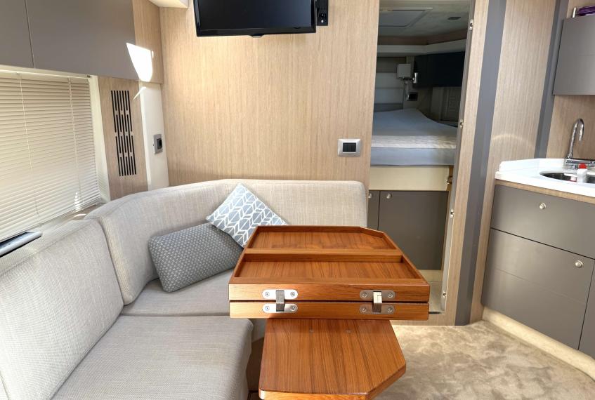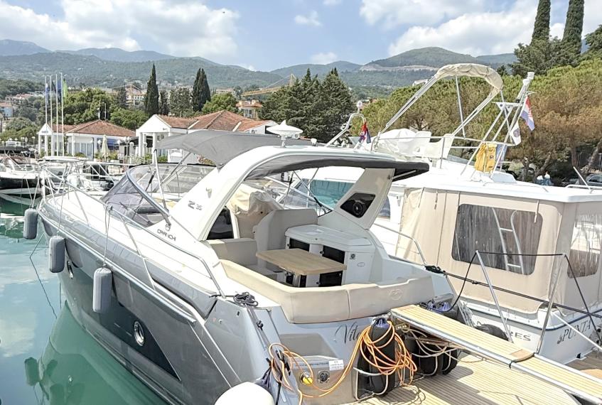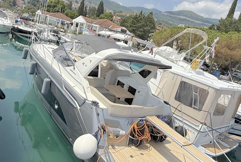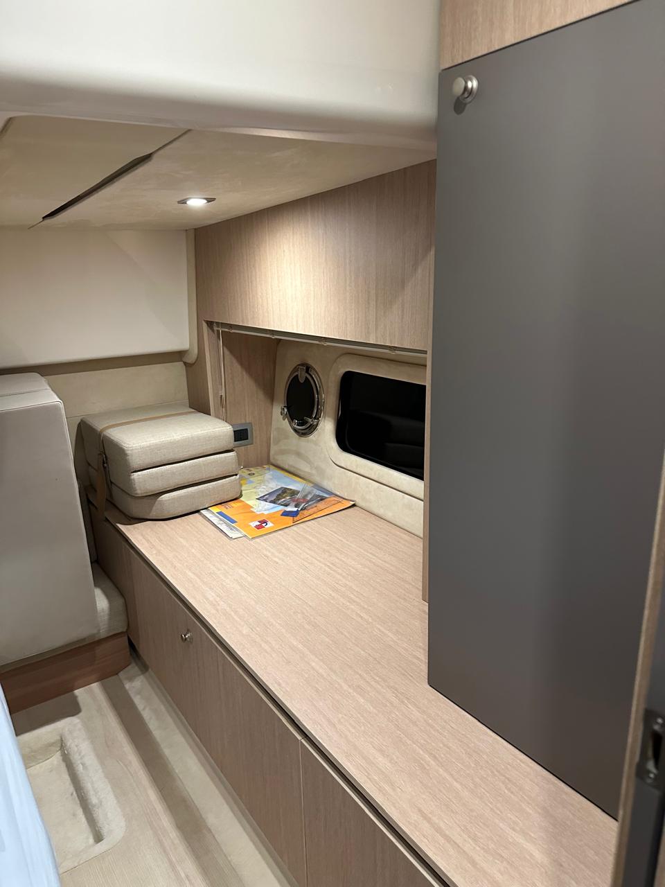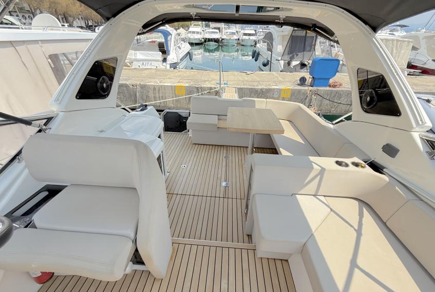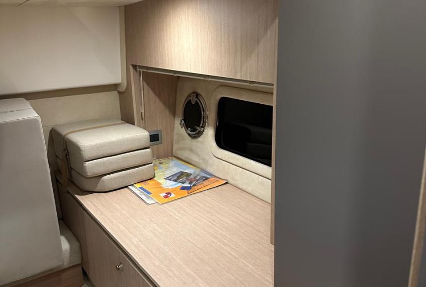 OPTIONALS: 2 X Volvo Penta D4 2x260 hp - 630 HOURS EUR 224.000,00 VAT EXCLUDED Bow and Stern Thruster + add. battery , Bilge micro suction system , Waste water tank , Ultramarine stainless steel anchor kg16, AC/DC 220V , Complete hood (with bimini),Cockpit fridge, Colour GPS/CHARTPLOTTER 10" ,Microwave oven, 3,5kw Generator , Electric cockpit grill, Air conditioning system 16.000 BTU with heat pump , Underwater lights n.3 , N.2 saloon roof window blinds , N°6 fenders + fender covers, Autopilot Garmin, Teak laid swimming platform , Teak laid cockpit , Cockpit cover , Salon Led TV + prearrangement in the cabins , V.H.F./DSC Garmin , Copy of “CE” certificate and declaration of conformity , Hood: alternative colour to standard one , Fernder covers: alternative colour to standard one , Exterior upholstery Silvertex: alternative colour to standard one , HULL lacquered (paint)