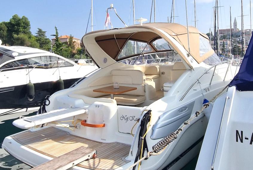 ENGINES & OPTIONALS:                                                                                                                                                                                              Volvo Penta 2xD4 EVC/DPI (2x260 HP)             -         700 HOURS                                                                                                                                                 Antifouling , n.2 coats                                                                                                                                                                                                                                                                                                                                                            Complete hood (with bimini)                                                                                                                                                                                                                                    Bow thruster with automatic                                                                                                                                                                                          Cockpit fridge - new model                                                                                                                                                                                                       GPS/colour chartplotter                                                                                                                                                                                                                                                                                                                                                                                                                                                               Autopilot                                                                                                                                                                                                                                                Teak laid swimming platform                                                                                                                                                                           FINAL PRICE  Incl. VAT:                       EUR       95.000,00