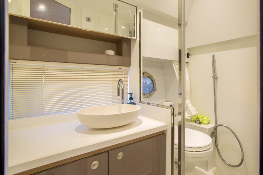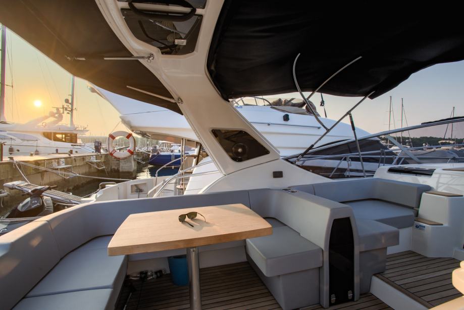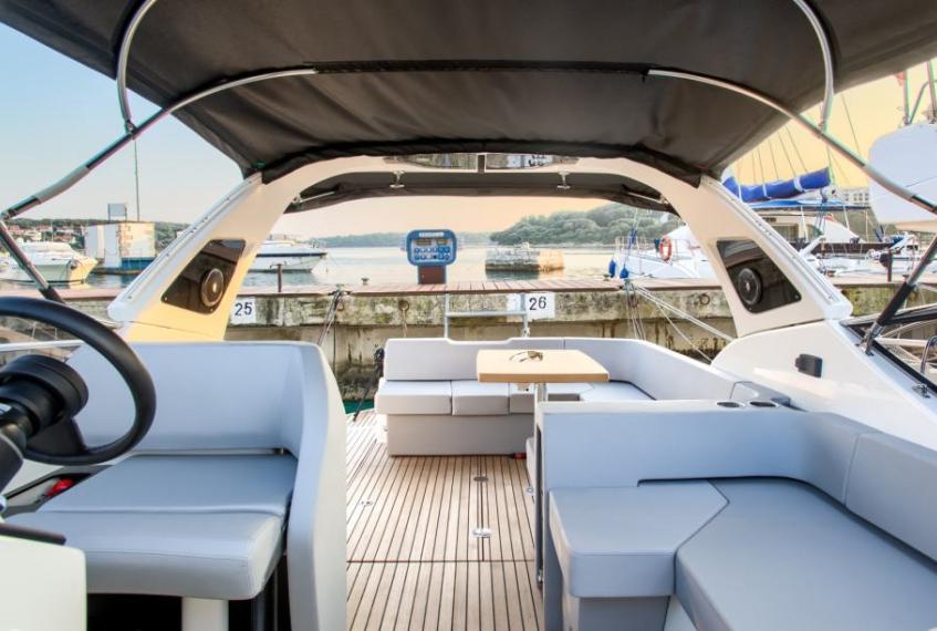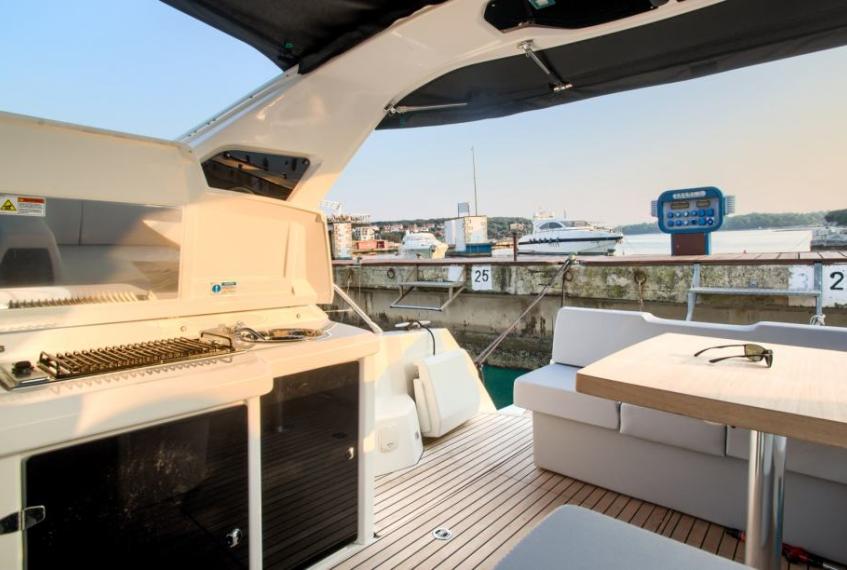 Anchor, Automatic Bilge Pump, Batteries, Battery charger, Bilge Alarm, Bow Thruster, cockpit table, Courtesy Lights, Deck Shower, Directional Spotlight, Draining System, Electric Bilge Pump, Electric Flaps, Electric Windlass, Engine Alarm, Fire Extinguishing System, Flaps Indicators, Gangway (carbon), Horn, Platform, Rollbar, Shorepower connector, swimming ladder, Teak Cockpit, Underwater lights, Water pressure pump, Winch Electric
