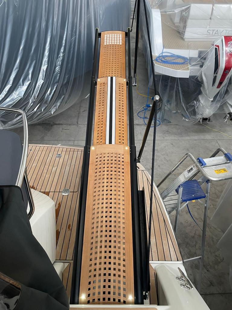 mt 2), Hard top (Verniciatura Hard Top+ Soft top in tela con colore alternativo allo standard), Passerella, Pozzetto Teak, camminamneti prua in teak, Presa 220V banchina, Salpancora Elettrico, Tavolo pozzetto (con verniciatura protettiva opaca, trasformabile in prendisole incluso cuscino)